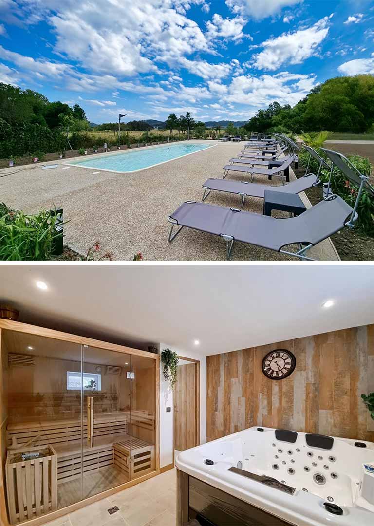 Une piscine extérieure est disponible, ainsi qu'un espace bien-être que vous pourrez réserver selon la formule retenue pour votre séjour.