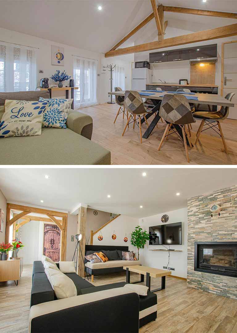 Chaque gîte offre de beaux espaces intérieurs lumineux.